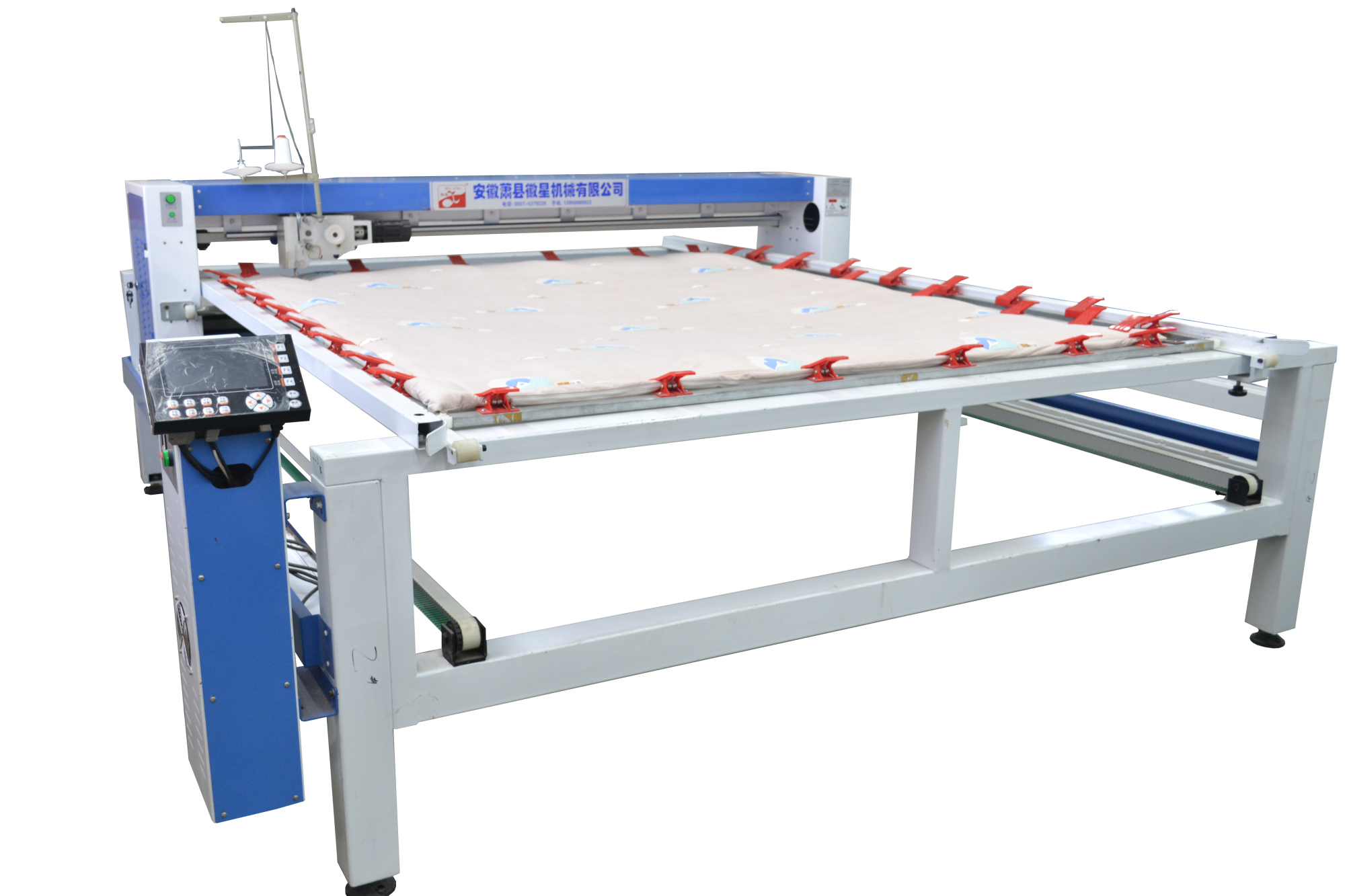 產品簡介:1.移動線路全部采用拖鏈裝置,設備整潔。 2.斷線檢查,面線段線自動停機,工作燈,穿線更方便。 3.四條同步皮短傳動,絎縫精度高。 4.高一規格和厚度的炫彩,確保了設備運行的穩定和吃厚度。 5.采用三相混合式步進電機,噪音接近無聲。 6.液晶顯示器,小控制柜,占地小(可選超小型控制柜) 7.配備新一代絎縫機專用電腦,穩定可靠,性能優良。 8.全新控制系統,內部實時檢測,確保不拉壞被子。 9.LED高亮度工作燈,夜間作業穿線更加安全方便。 10.電腦、電機出現故障自動停機,同時電腦畫面顯示故障內容。 11.電腦采用DST花樣打板系統,自帶幾百常用花型。"