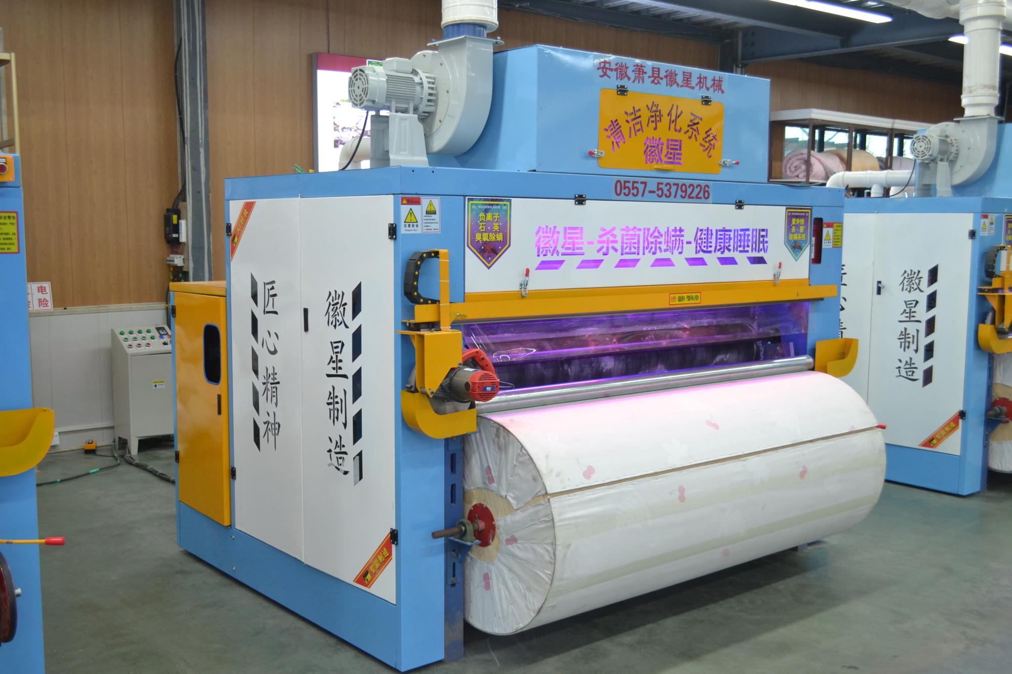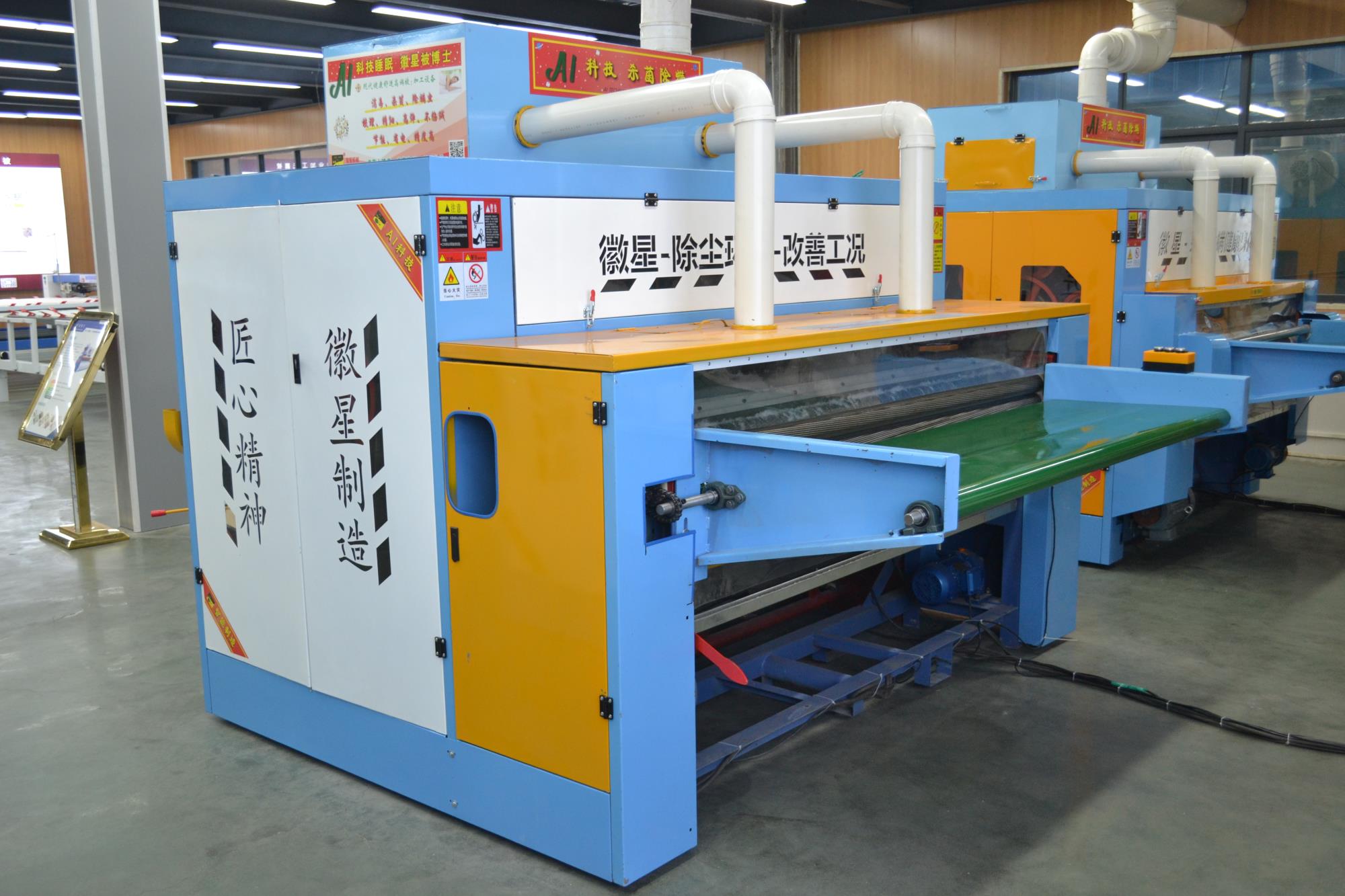 產(chǎn)品簡(jiǎn)介:彈花梳理一體機(jī)高配款,可對(duì)棉被寬度自由調(diào)節(jié),為對(duì)用戶(hù)的生產(chǎn)帶來(lái)了方便,大功率排風(fēng)機(jī),高效的吸除落棉、飛花和粉塵的裝置改善了勞動(dòng)環(huán)境減少了紗疵該機(jī)排雜性能良好。彈花梳理一體機(jī)高配款已向優(yōu)質(zhì)、高產(chǎn)、低耗的方向發(fā)展,機(jī)流程簡(jiǎn)單易學(xué),分體控制柜,按鍵一鍵啟動(dòng),雙側(cè)羅拉采用全封閉設(shè)計(jì),防纏繞,不塞棉,不藏灰,低噪音,錫林工作輥采用上市公司原材,該機(jī)可隔機(jī)安全觀(guān)察,開(kāi)松四羅拉不抽花,雙雜亂。它配有雙吸塵系統(tǒng),除去棉花中的粉塵以及短絨,同時(shí)改善了工作環(huán)境。該機(jī)可對(duì)各種纖維、棉花、羊毛、駝絨、等原料開(kāi)松梳理,是生產(chǎn)棉被、羊絨被、絲綿被的機(jī)械。